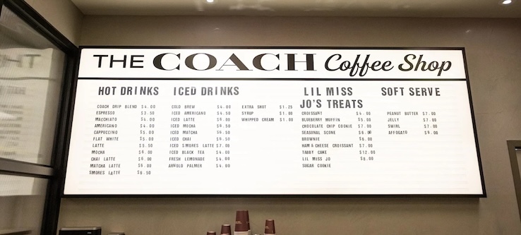 You might be wondering—what makes this Coach store stand out when they’re all over the country? This one comes with a twist: a full-service coffee shop. As only the second coffee shop location (the first debuted in New Jersey), being able to sip on a brew and shop ’til you drop is worth raving about! Indulge in signature drinks like the Iced S’mores Latte, sweet treats like their Tabby cake (yes, it’s shaped like the iconic bag!), and soft-serve jelly ice cream. Plus, don’t miss the exclusive Lil Miss Jo’s merch—from branded totes and tees to buttons and coffee mugs, it’s a whole vibe you won’t find anywhere else.