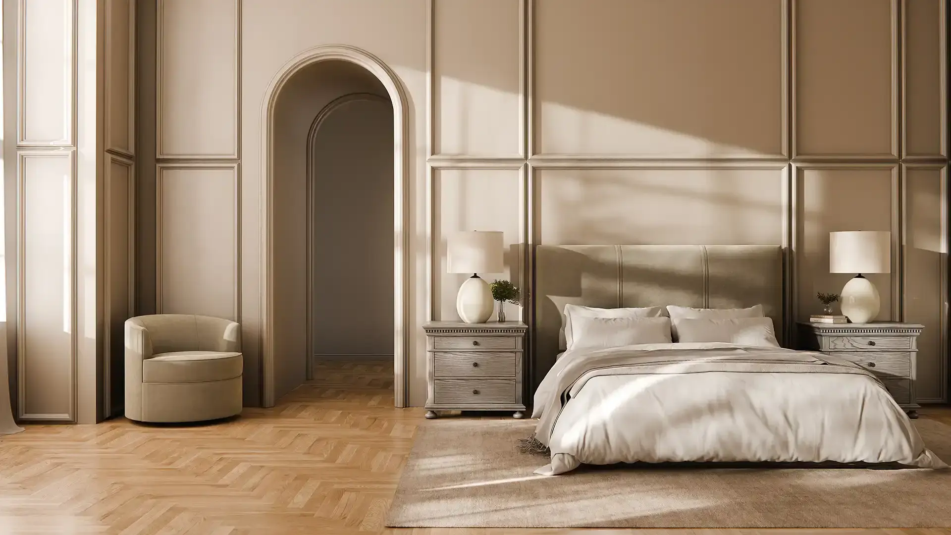 - Areos Bedside Lamp: The Areos lamp features a soft, organic shape with a cream-crackled ceramic finish, offering a touch of elegance to any bedroom decor.