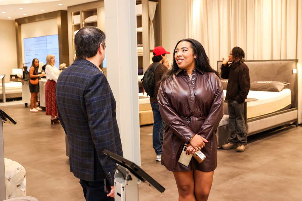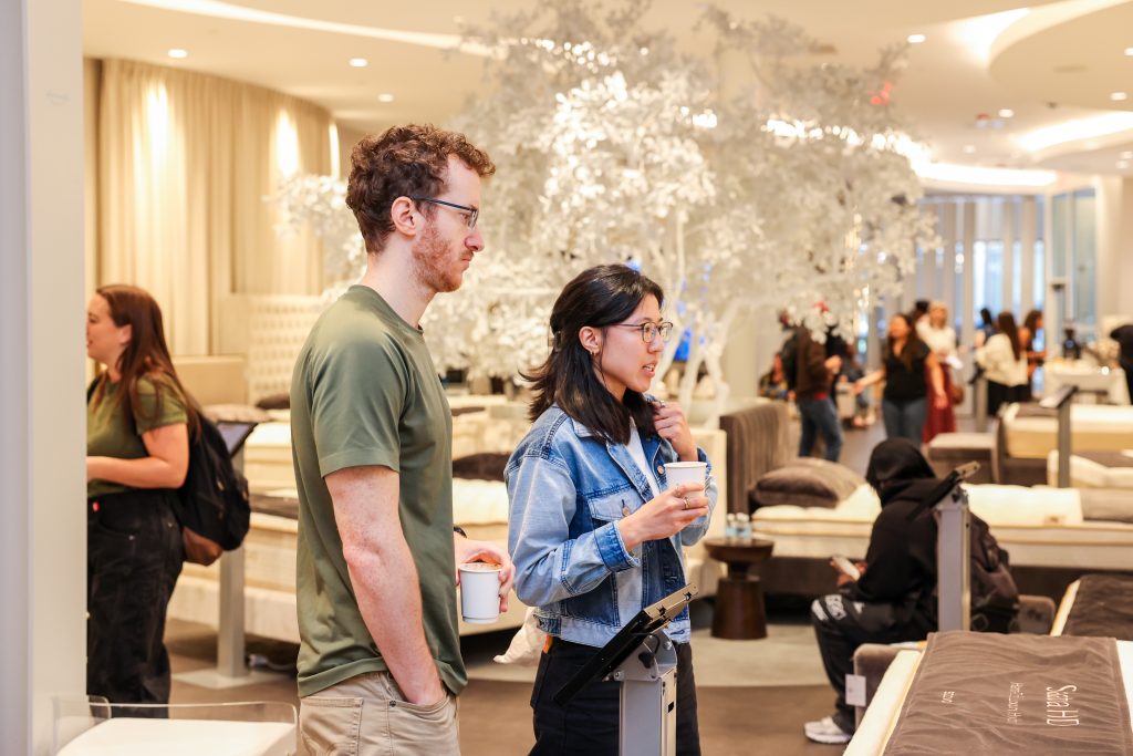 Guests were welcomed into the beautifully designed Viewing Room and a conversation led by Alison Barretta, a prominent sleep writer and mattress reviewer, and Kerry Offsey, Design Director at Hines Collective. They discussed the inspiration and design concept behind the flagship location, emphasizing how the space was designed to embody comfort and elegance.